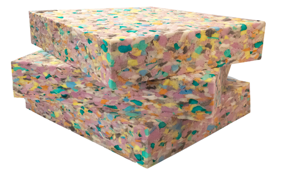 A Espuma aglomerada é composta de materiais pré-selecionados, em que resulta em um material ecologicamente correto, nobre e de altíssima densidade e durabilidade.